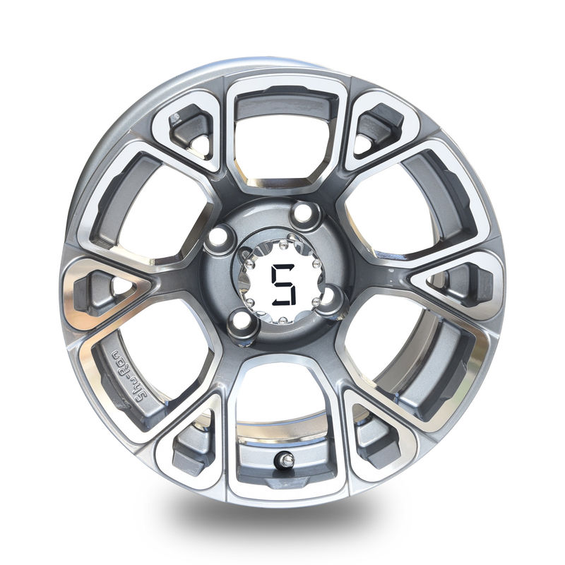 Καρότσι του γκολφ 12 ίντσες Εργασμένα / Πυροσβεστικά αλουμινένια τροχούς, συμπεριλαμβανομένων των κεντρικών καπάκων 4x4 ((101.6mm) Μοτίβο μπουλτού